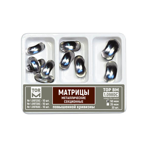 Матрицы металлические секционные повышенной кривизны, 50 микрон, № 1.098DC (30шт), Тор ВМ