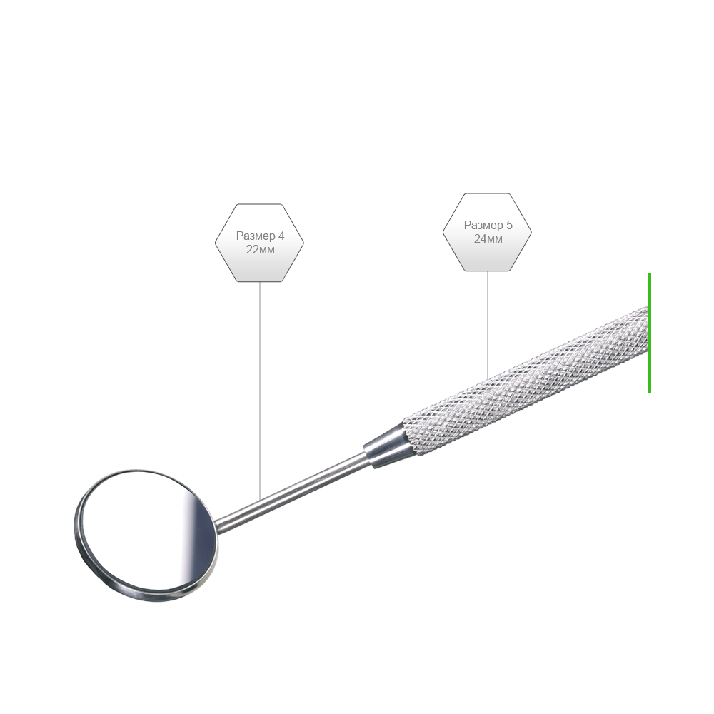- Конструкция стоматологического зеркала выполнена из нержавеющей стали. Она обеспечивает большую бескоррозийную долговечность, чем латунь с хромовым или никеливым покрытием.