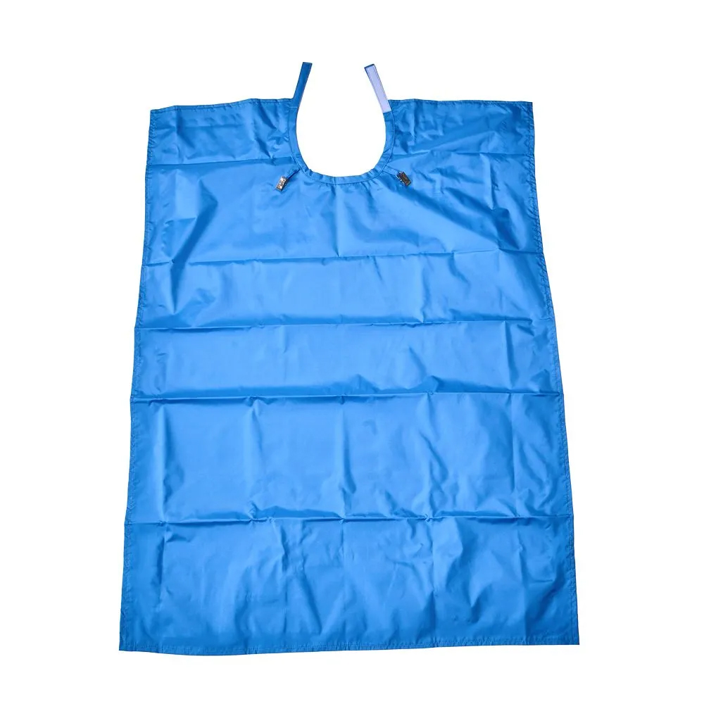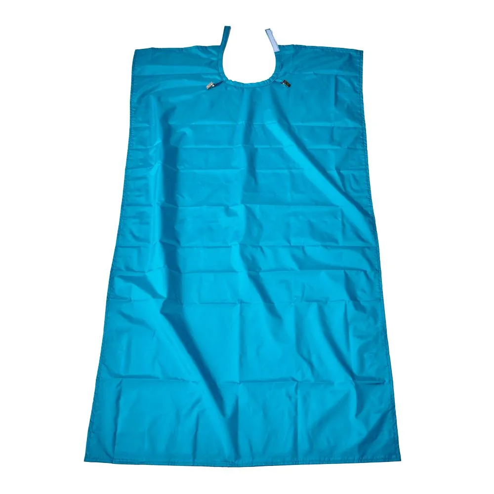 Фартук снабжен специальными зажимами для крепления нагрудных одноразовых салфеток для большей защиты и безопасности пациента. Регулируемая по шее застежка позволяет закрепить фартук максимально комфортно.