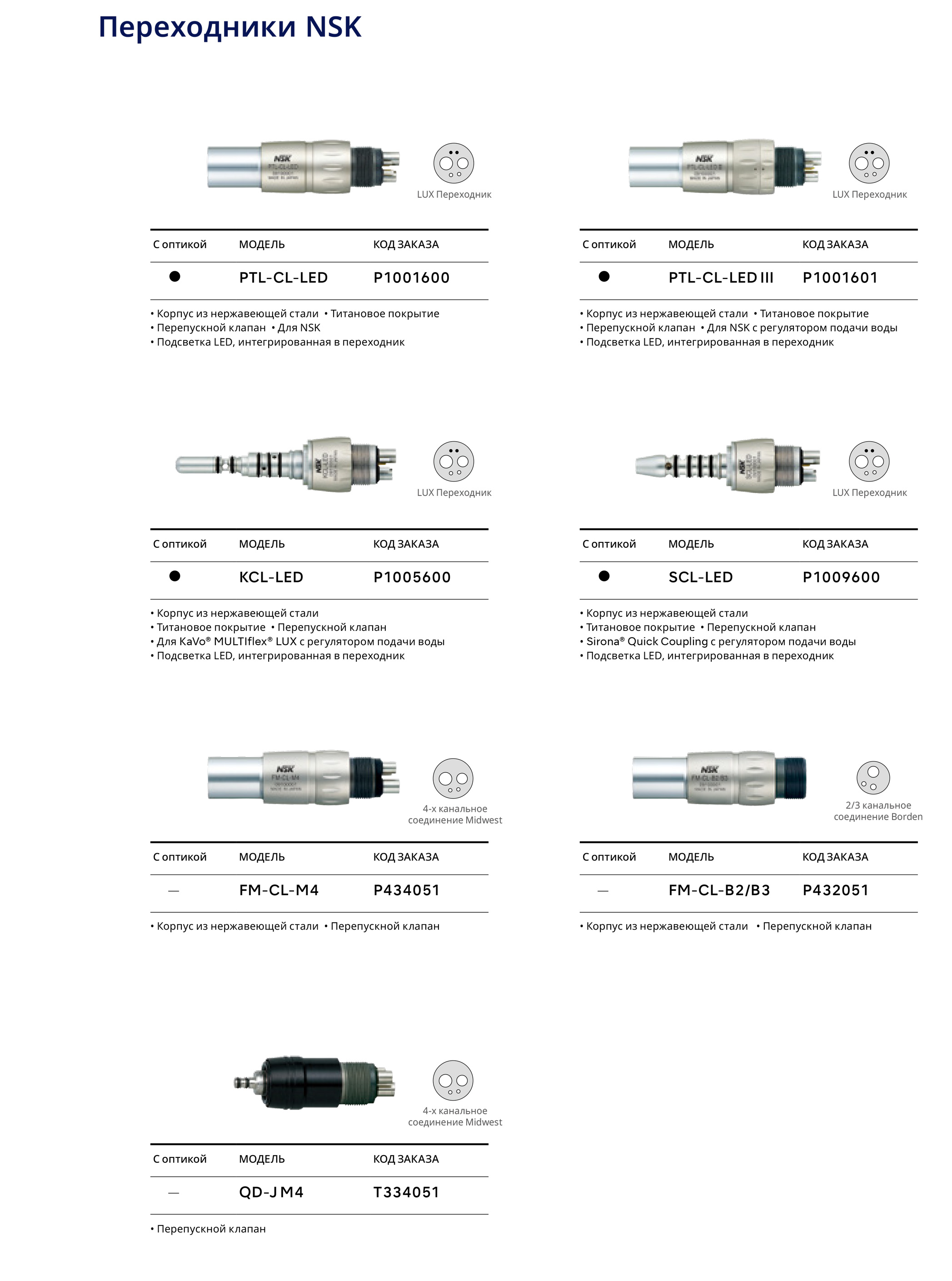 Переходник PTL-CL-LED от производителя NSK Nakanishi Inc с технологией LED для соединения NSK.