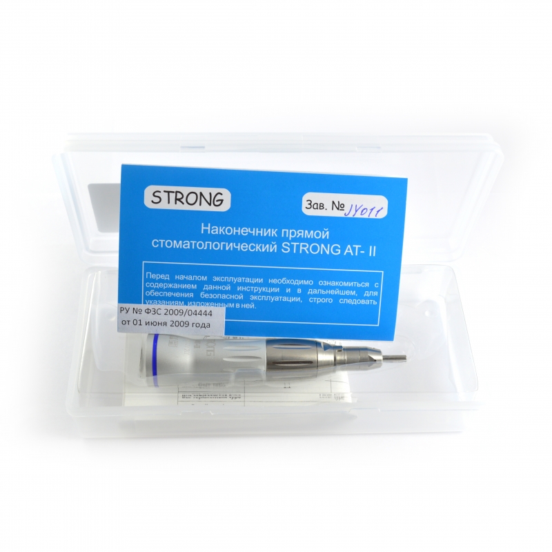 Прямой наконечник STRONG AT-II применяется для оказания стоматологической помощи в стационарных условиях стоматологических кабинетов, клиник, больниц и других лечебных учреждений. Прямыми наконечниками могут быть оснащены стационарные, передвижные или переносные портативные бормашины.
