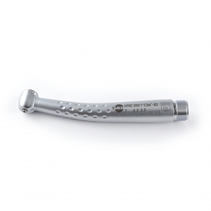 Наконечник турбинный кнопочный стоматологический НТКС-300-1 «СЗМ» B2 от производителя Вх-Тайфун с нормируемым в динамике радиальным биением и входящими в конструкцию специальными шарикоподшипниками, предназначен для закрепления режущих инструментов с диаметром хвостовика 1,6 мм и передачи им вращения от бормашины.