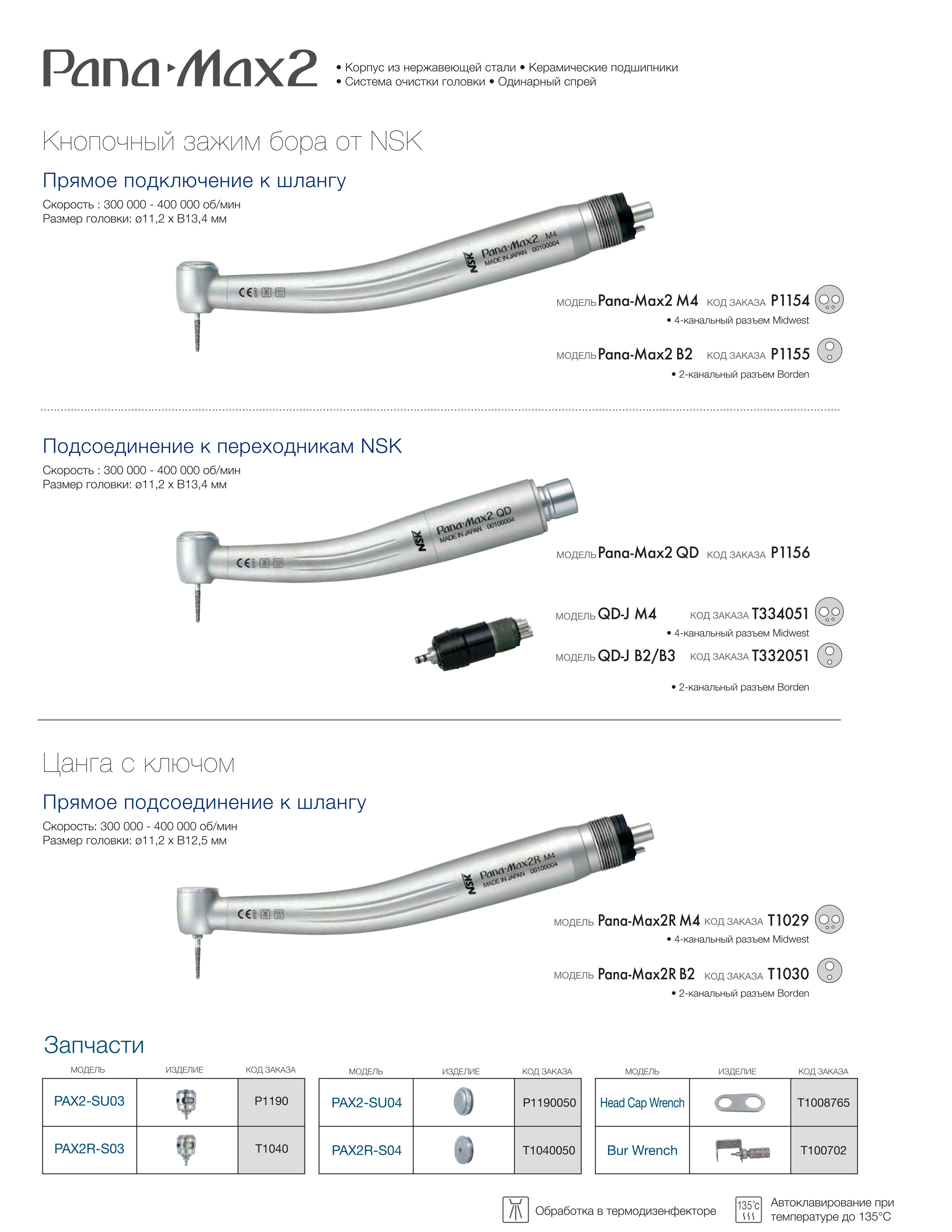 - Все наконечники NSK обеспечивают высочайшую надежность и отличный результаты даже при неоднократном автоклавировании при температурах до 135°C.
