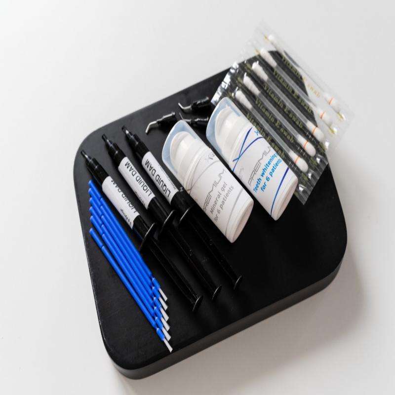 - Набор поистине уникален: отбеливающий гель в дозаторе уже активирован, его не нужно смешивать, он сразу наносится из флакона на зубы для более быстрой подготовки.