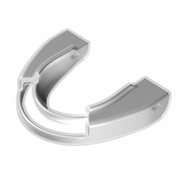 - Припасовывается на нижнюю зубную дугу. Двухслойный материал шины обеспечивает мягкость и жесткость сплинта. Положение нижней челюсти задается припасовкой.