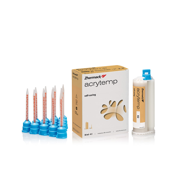 Акритемп (Acrytemp) от производителя Zhermack - самополимеризирующаяся композитная пластмасса для изготовления коронок и мостов в зубоврачебном кабинете.