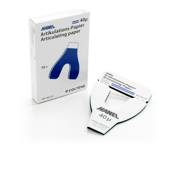 Hanel артикуляционная бумага U-образной формы, покрытая с обеих сторон краской, используется в гнатологии. Обладает высоким маркирующим эффектом. При использовании на моделях может использоваться многократно, так как красящее покрытие обладает способностью к регенерации.