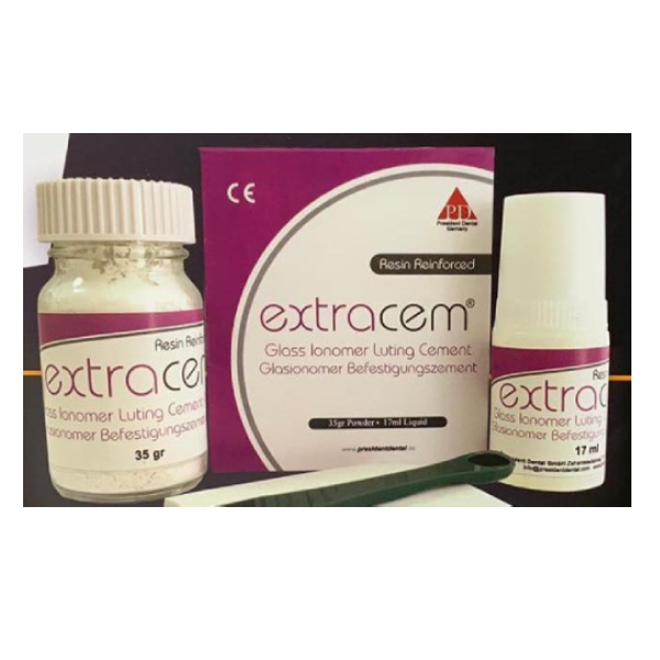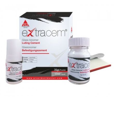 ExtraCem от производителя President Dental – это рентгеноконтрастный стеклоиономерный цемент с длительным рабочим временем с последующей реакцией на схватывание.