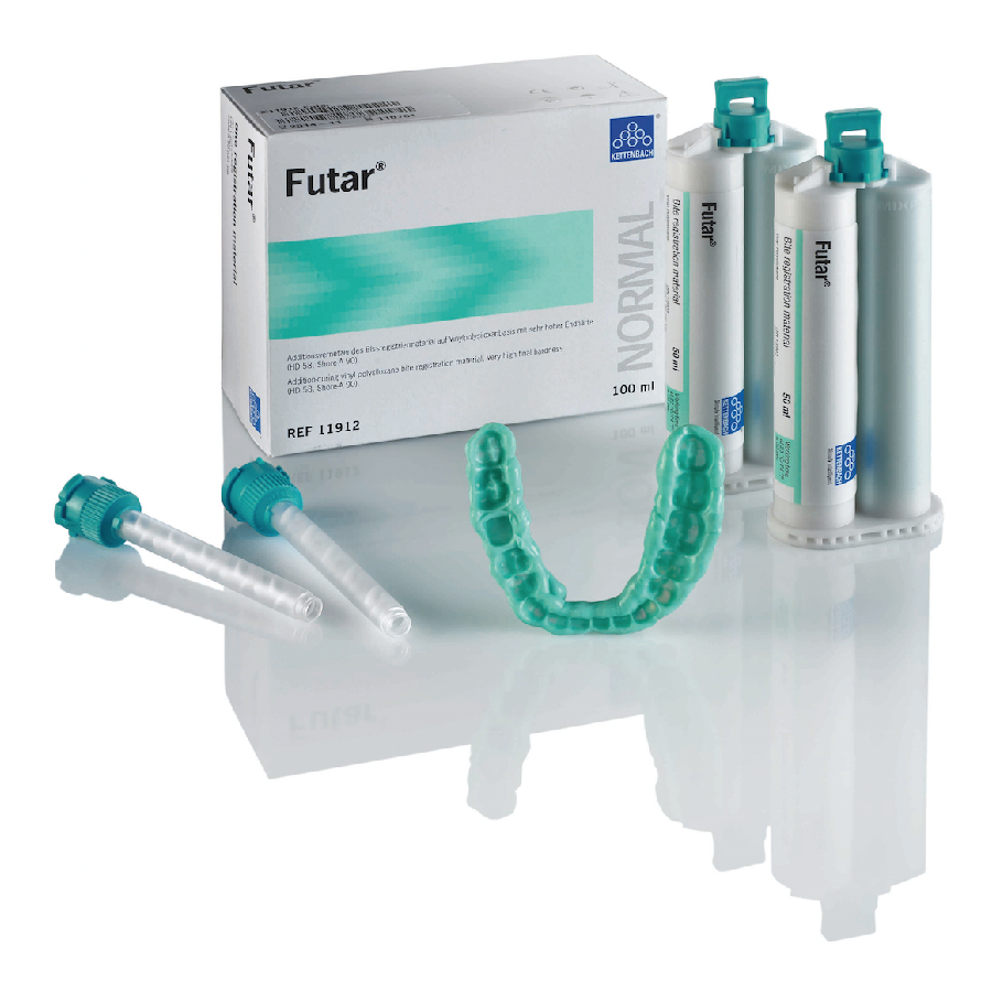 Futar от производителя Kettenbach – эластомерный, аддитивный материал для регистрации прикуса на основе винилполисилоксана с высокой конечной твердостью для точного воспроизведения особенностей окклюзии.