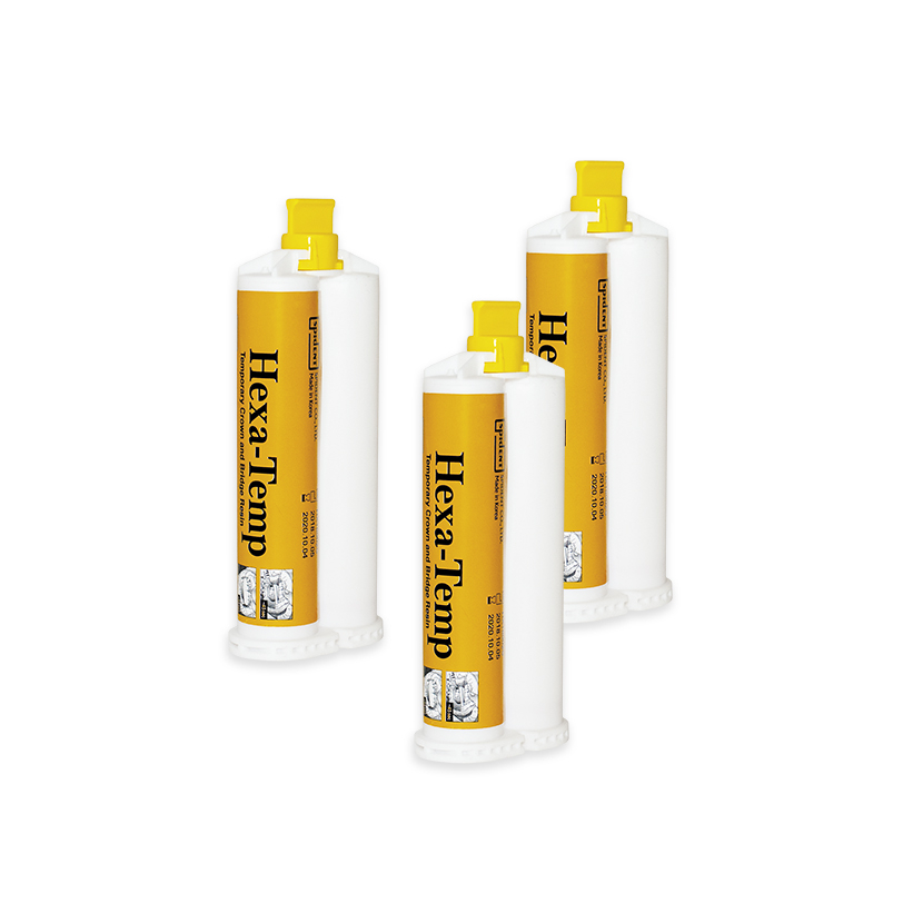 Hexa-Tem от производителя Spident — самоотверждаемый материал для временных коронок и мостов в безопасных картриджах.