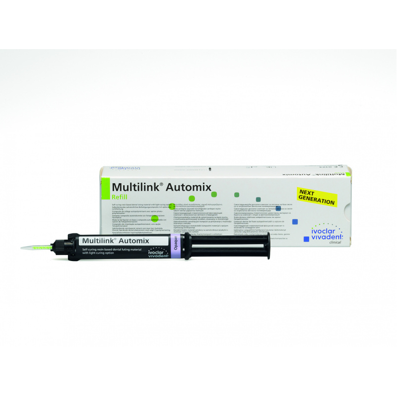 Multilink Automix от производителя Ivoclar Vivadent — это самотвердеющий композитный цемент с опциональной возможность фотополимеризации для адгезивной фиксации непрямых реставраций, изготовленный из металла, металлокерамики, цельной керамики и композита.