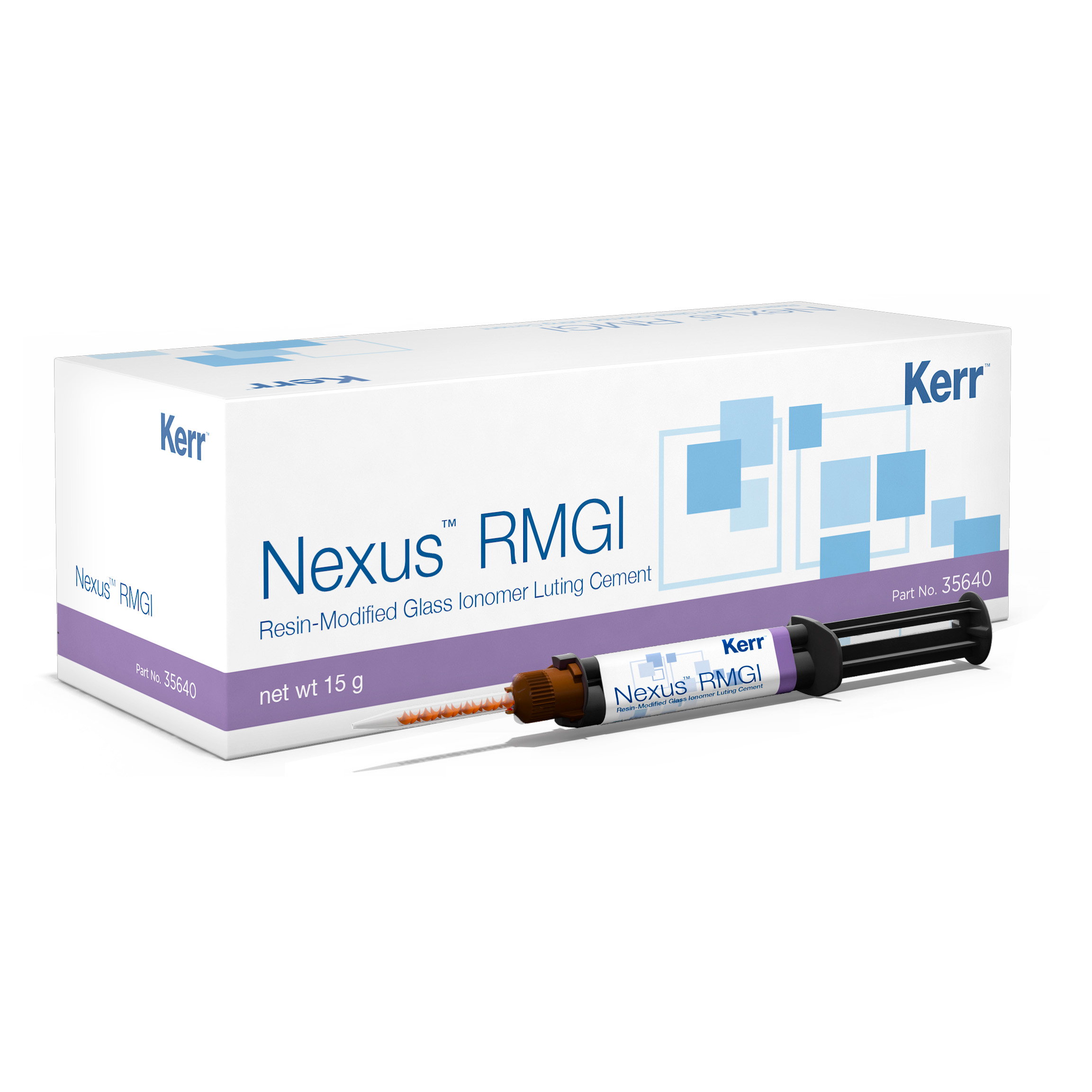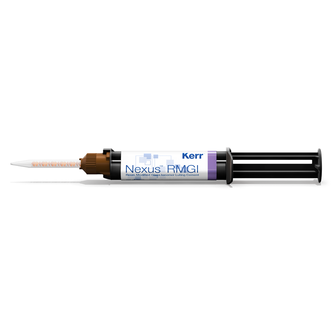 Стеклоиономерный цемент Нексус РМДжиАй - Nexus RMGI от производителя Kerr — стеклоиономерный цемент, модифицированный композитной смолой, для надежной фиксации реставраций с дополнительной защитой от вторичного кариеса.