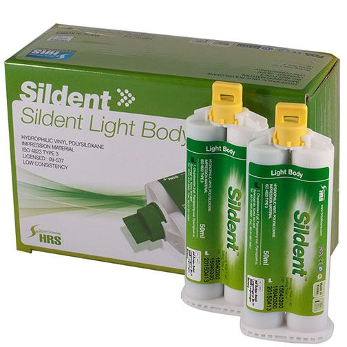 Sildent Light Body, HRS – винилполисилоксановый-VPS корригирующий материал низкой вязкости для снятия высокоточных оттисков. Используется в комбинации с Sildent Putty, Sildent Heavy Body.