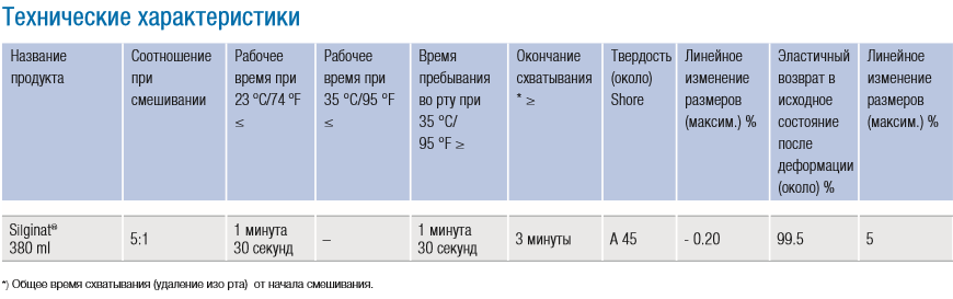 - А-силикон с альгинатоподобными свойствами: оптимальная способность возвращаться в исходное состояние, высокая стабильность размеров, очень тиксотропный, высокая текучесть, низкая устойчивость к разрыву.