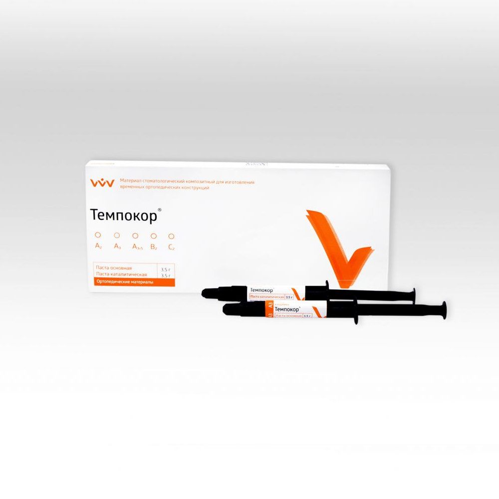 Темпокор от производителя Владмива — материал стоматологический композитный для изготовления временных ортопедических конструкций.