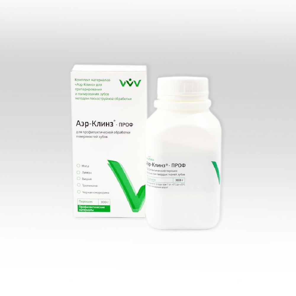 Аэр-Клинз-ПРОФ — материал для препарирования и полирования зубов методом пескоструйной обработки от производителя Владмива.