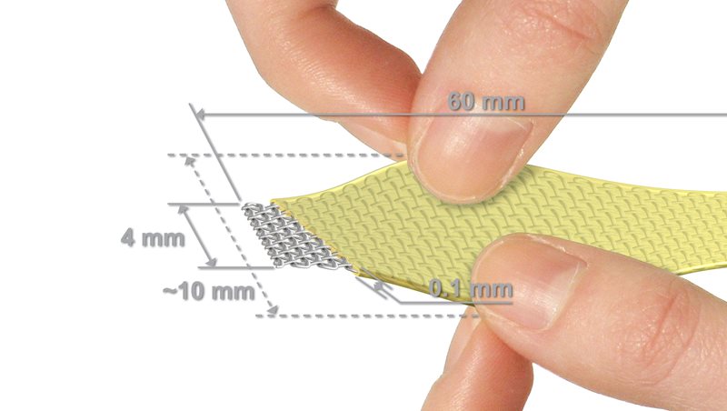 Размеры: ширина 4-10 мм (растягивается), толщина 0,1 мм, длина 50 мм. В упаковке 8 лент. Также продается по 1 ленте.