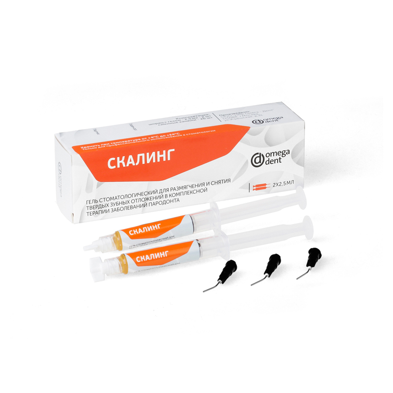 Скалинг от производителя Омега-Дент — гель для размягчения и снятия твердых зубных отложений.