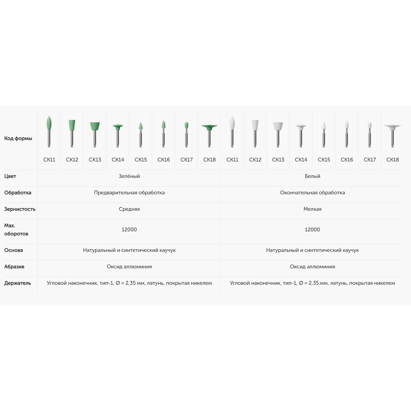 Головки предназначены для обработки пломб из материалов стоматологических полимерных восстановительных (композитных). Для предварительной обработки зеленые и окончательной белые головки.