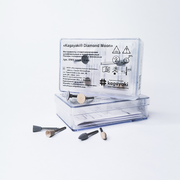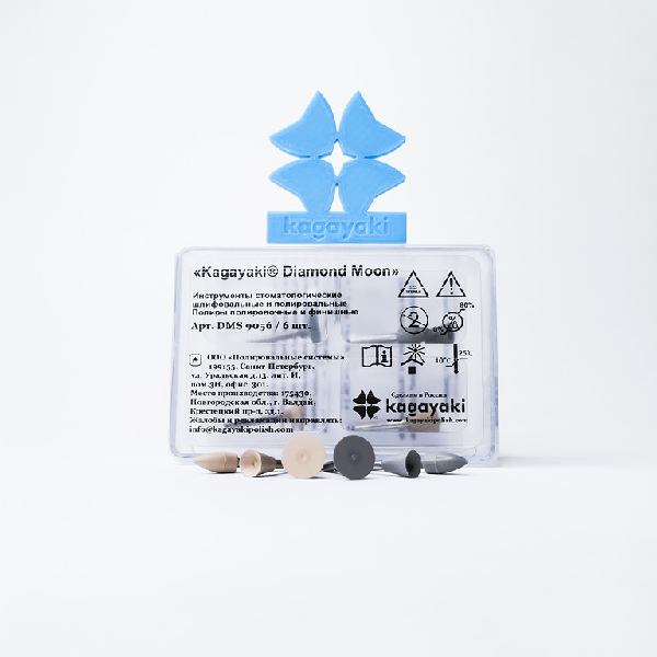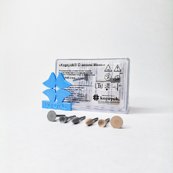 Kagayaki Diamond Moon от производителя Kagayaki – это двухступенчатая полировочная, финишная система для проведения финишной обработки механическим способом поверхности реставрации с предварительно сформированными контурами. Полиры применяются для сглаживания шероховатостей, придания блеска и гладкости поверхности.