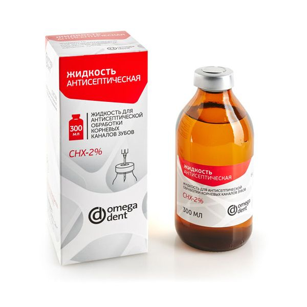 Хлоргексидин 2% от Омега-Дент — жидкость для антисептической обработки корневых каналов зубов — для антисептической обработки корневых каналов и кариозных полостей.