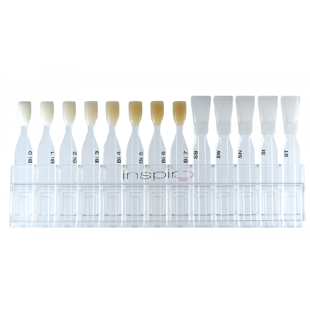 Расцветка Inspiro является неотъемлемой частью “Концепции натуральных слоев” и включает два четко разделимых реставрационных слоя (body&skin). Она имеет небольшие dentin/body образцы, которые при необходимости можно вставлять в enamel/skin образцы для демонстрации возможных 2-слойных комбинаций. Выбор нужного enamel/skin осуществляется визуально путем сопоставления с природной эмалью.