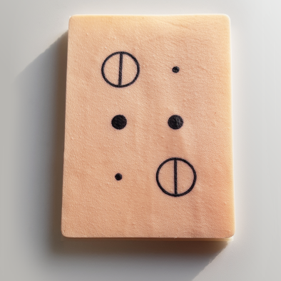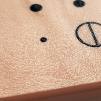 • Представляет собой имитацию участка кожи с текстурой кожи реального человека, на которую нанесены три вида поверхностных отметок для отработки навыков местной инфильтрационной анестезии кожи.