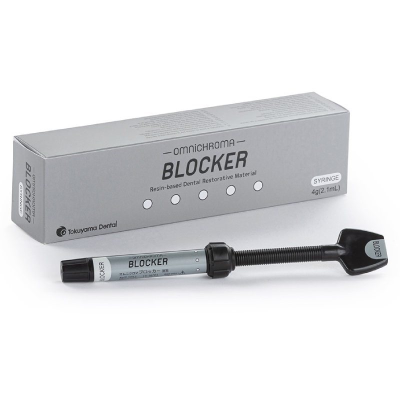 Omnichroma Blocker от производителя Tokuyama Dental — дополнительный композитный материал, устраняющий оптическое влияние темноты полости рта и излишнюю прозрачность реставраций при восстановлении обширных сквозных дефектах передних зубов.