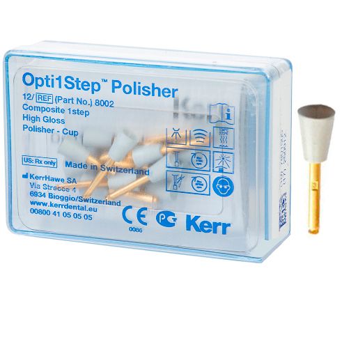Opti1Step от производителя Kerr – это одноэтапная полировочная система для финишной обработки до зеркального блеска всех видов композитных реставраций.