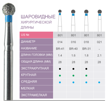 Бор алмазный 801-014 SL, BR-41 SL шаровидный (5 шт.), Prima Dental Group.