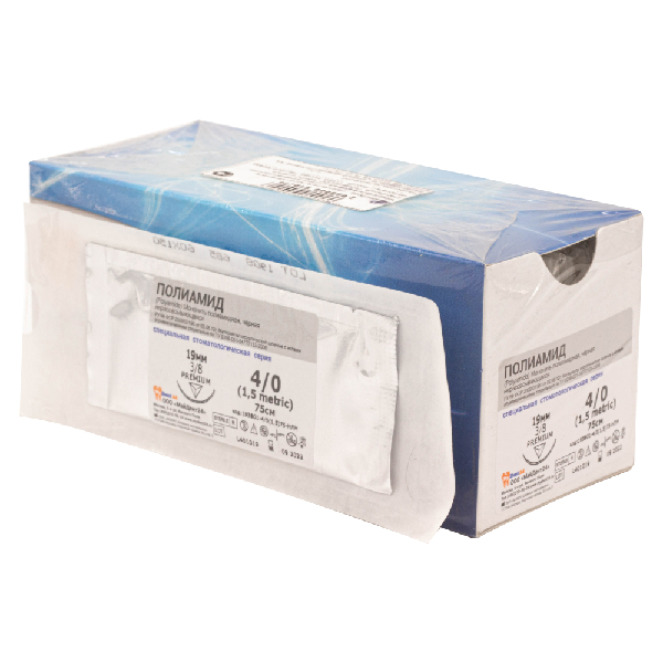Полипропилен от производителя МайДент24 — синтетическая нерезорбируемая стерильная хирургическая мононить на основе полиамида.