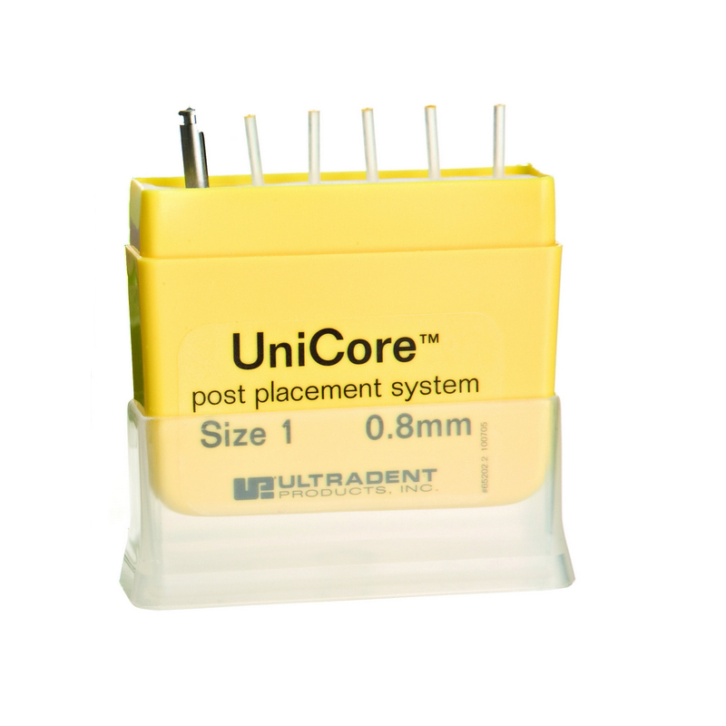 UniCore Post от производителя Ultradent — полупрозрачные, рентгеноконтрастные стекловолоконные штифты не требующие дополнительной силанизации.