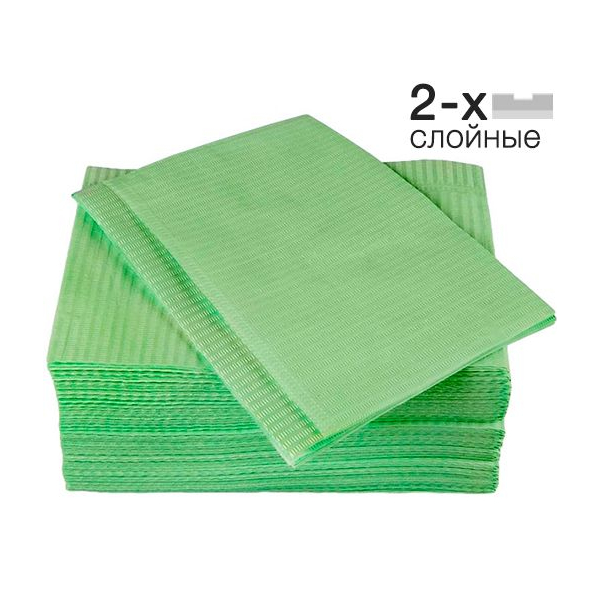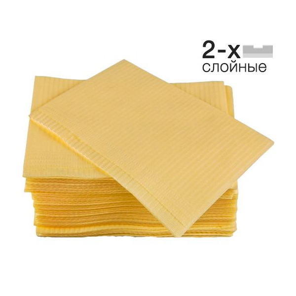 Нагрудные салфетки двухслойные Стандарт от производителя Кристидент — нагрудники стоматологические 2-х слойныйе, одноразовые, максимально защищают одежду пациента от загрязнения во время стоматологического лечения и сопутствующих процедур благодаря рельефному горизонтальному рисунку.