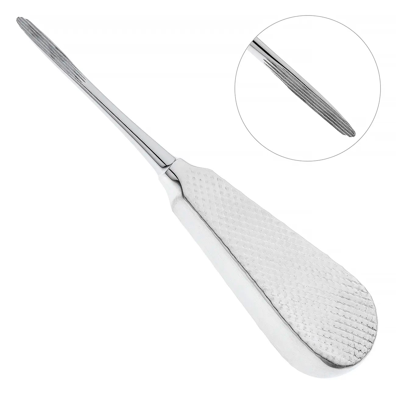 - На щечке элеватора расположены продольные насечки, которые фиксируются на поверхности корня зуба и облегчают его удаление.