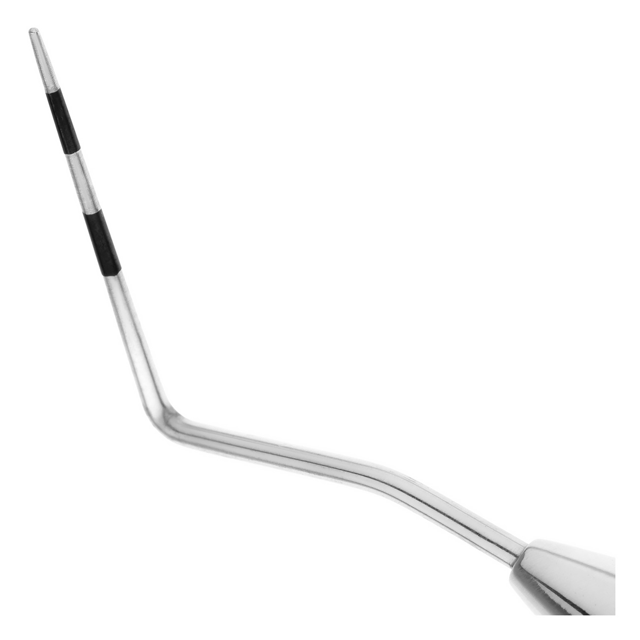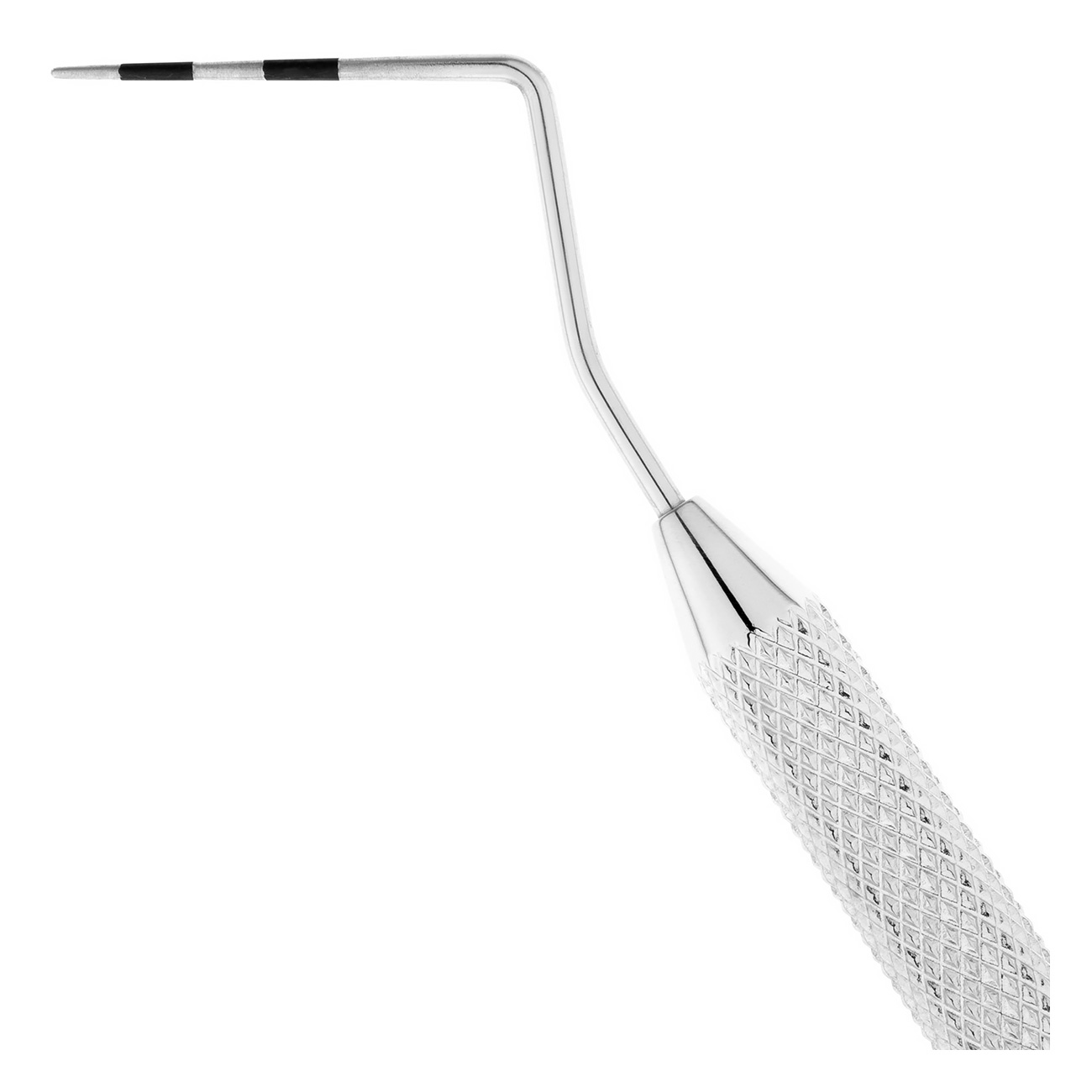 - Круглая ручка зонда покрыта ретенционными насечками, предотвращающими скольжение пальцев.