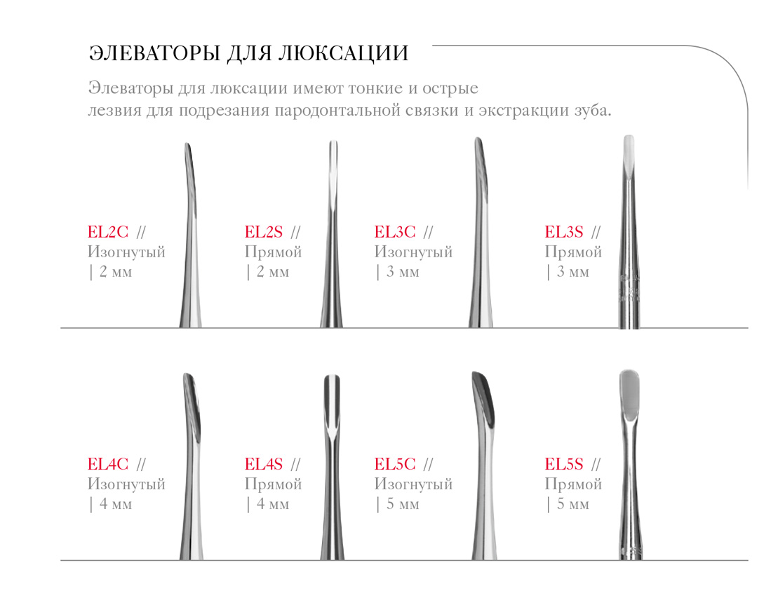 Элеваторы для люксации от производителя Hu-Friedy с тонкими острыми лезвиями для подрезания пародонтальной связки и экстракции зуба.