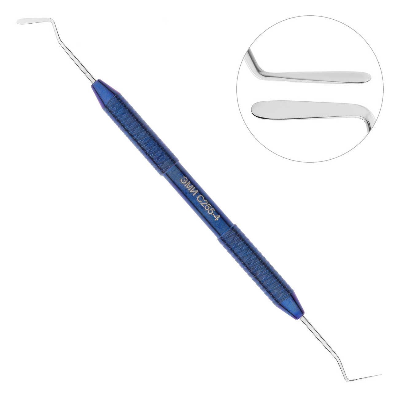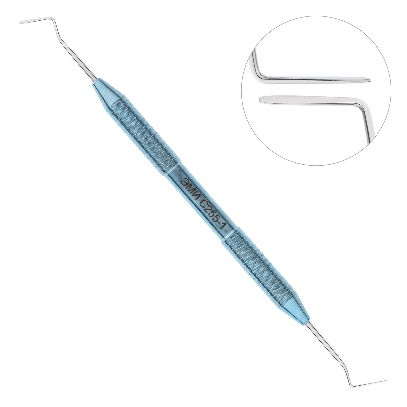 Гладилка дистально-медиальная изгиб 60° от производителя ЭМИ — предназначена для внесения и предварительного размещения пломбировочного материала в обработанной кариозной полости.