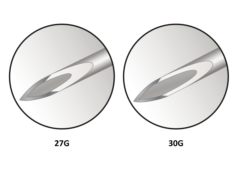 Карпульная игла состоит из высококачественной стали, которая отличается высокой гибкостью и надежностью. Особенностью конструкции иглы является ультратонкая трехгранная заточка режущего края противостоящая случайным механическим повреждениям и как следствие снижающая риск получения травм.