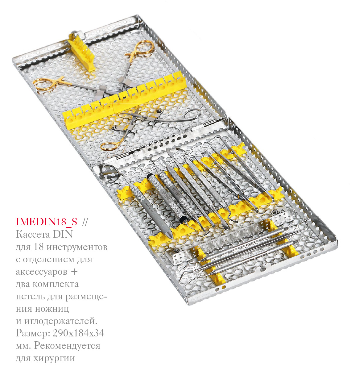 IMEDIN18_ кассеты DIN для 18 инструментов от производителя Hu-Friedy, с отделением для аксессуаров.