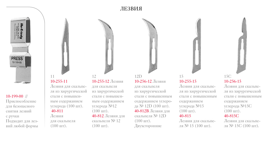 - 10-256-15 — лезвия №15C, односторонние (100 шт.).