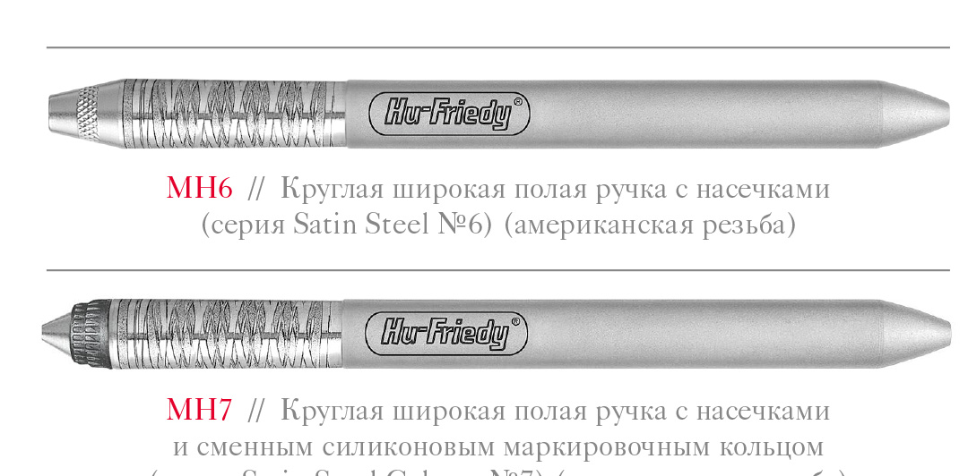 MH6, MH7 Ручка для зеркала, Hu-Friedy — круглые широкие полые ручки с насечками.