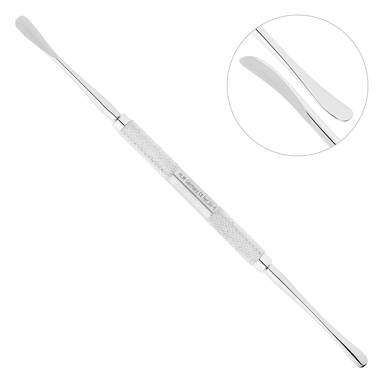 - Артикул 30-6 — распатор Freer двусторонний, 17,5 см, 5,0-5,0 мм, тупой/острый: одна из рабочих частей имеет остро заточенную и закругленную грань шириной 5 мм, противоположная такая же, но с тупым окончанием;
