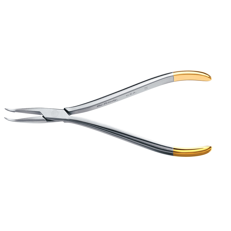 - Артикул 678-702-90 — лингвальные, с длинными ручками и тонкими рабочими частями. Угол изгиба рабочих частей 90°. Размер проволоки: < 0,030” (0,75 мм).