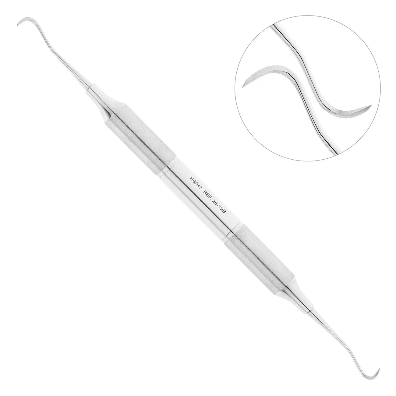 - 26-19B — скейлер парадонтологический H6/H7 с ручкой Deluxe диаметром 10 мм.