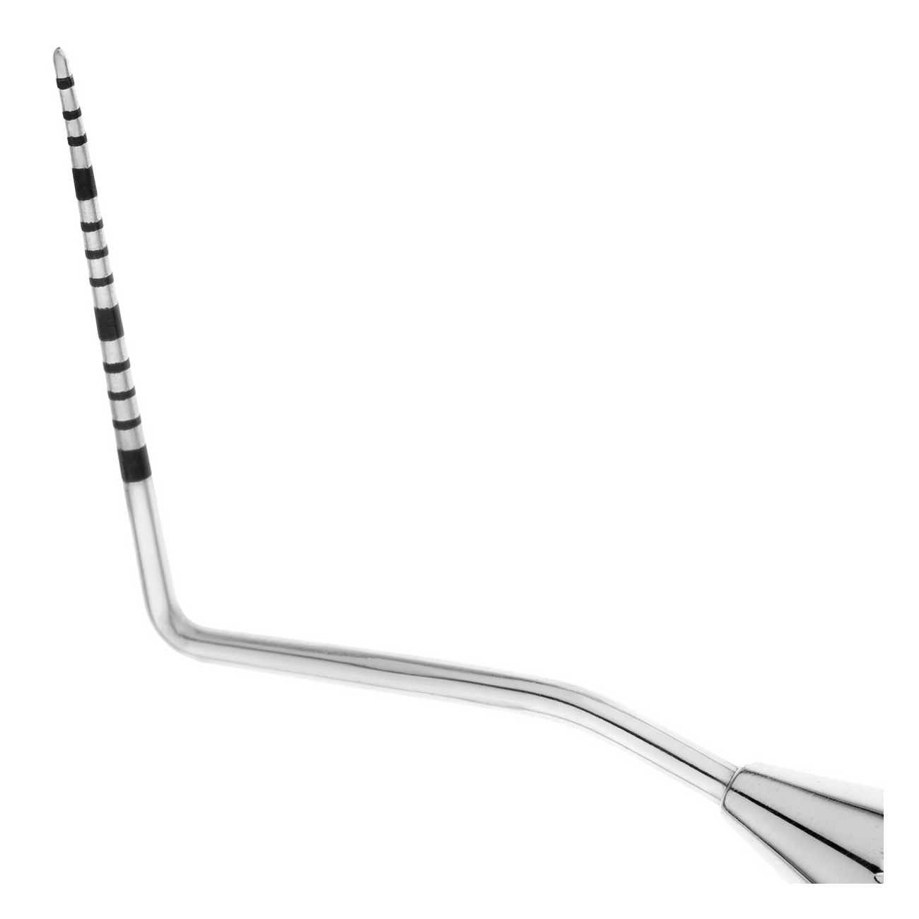 - Круглая ручка зонда покрыта ретенционными насечками, предотвращающими скольжение пальцев.