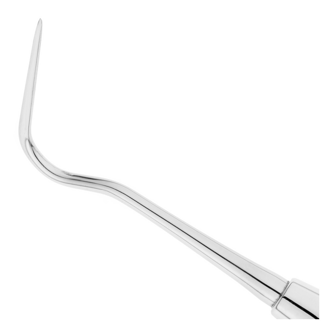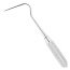 - Рабочая часть одностороннего инструмента имеет серповидную форму с заостренным и удлиненным окончанием. Благодаря такой конструкции стоматологический зонд очень удобен в использовании и его можно глубоко ввести как в кариозную полость, так и десневой карман.