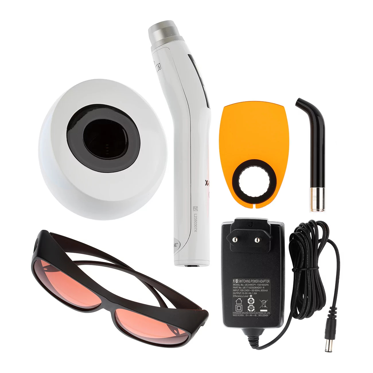- Check – от 200 до 400 мВт/см2. Предназначен для обнаружения кариеса с использованием ультрафиолетового излучения. Используется вместе с поставляемыми в комплекте очками с оранжевыми линзами для определения пораженной области зуба.