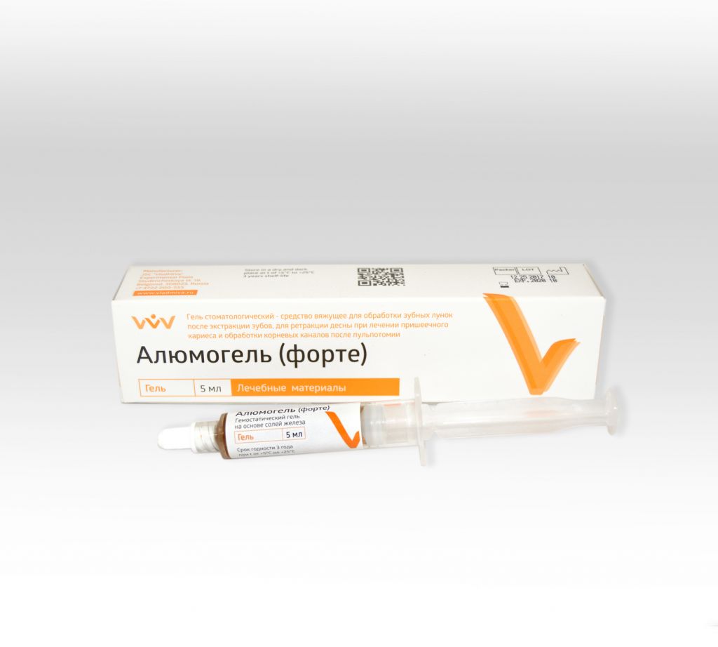 Алюмогель от производителя Владмива — гемостатическое средство при капиллярном кровотечении из десны, для ретракции десны при снятии слепков и лечении пришеечного кариеса, при проведении профессиональной гигиены, а также для обработки корневых каналов при апикальном кровотечении.