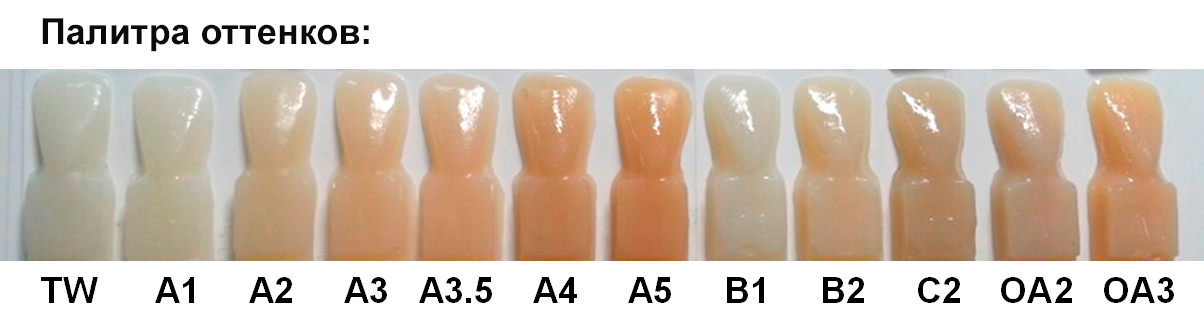 Оттенки: A1, A2, A3, A3.5, A4, A02, AO3, B1, B2, C2, TW.