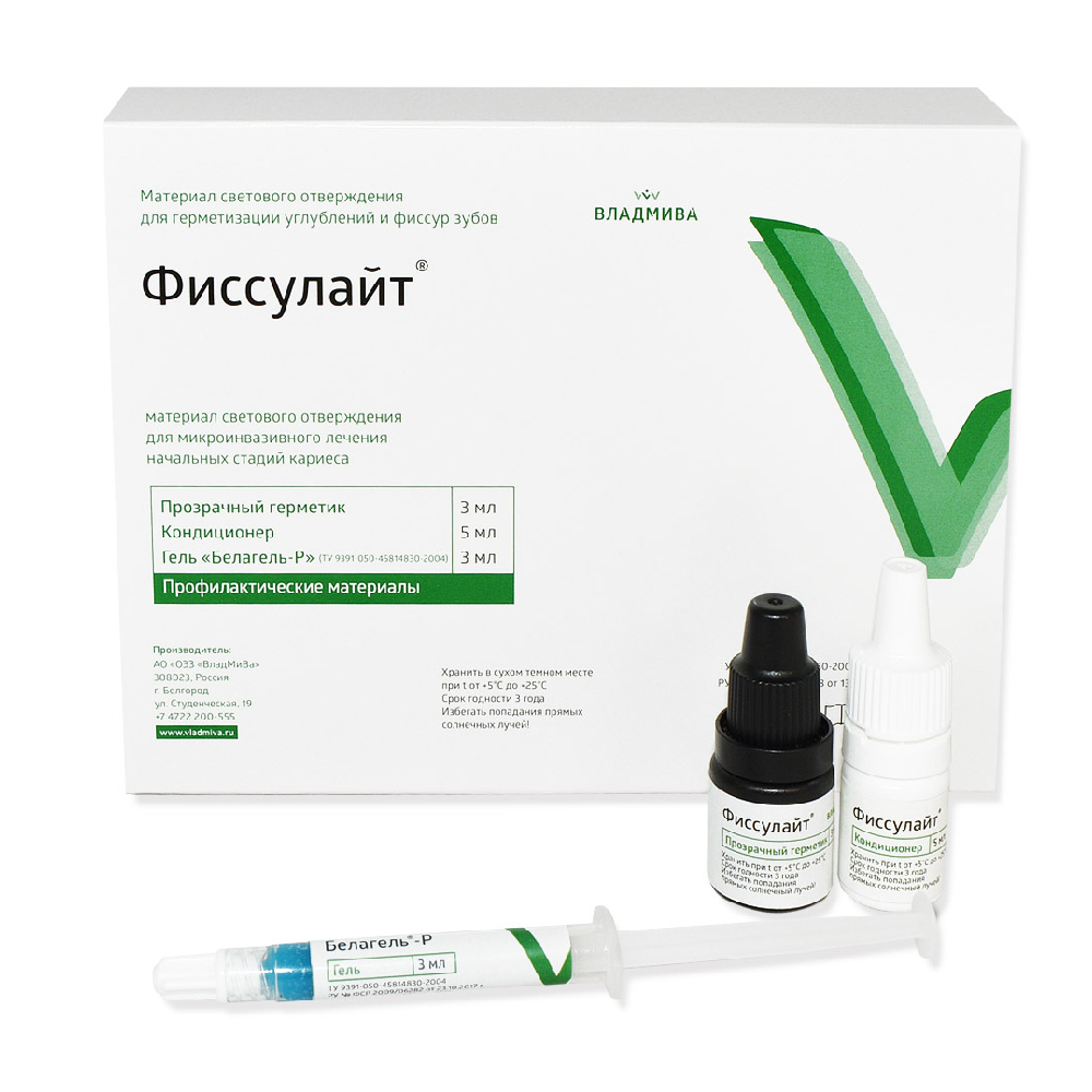 Фиссулайт набор от производителя Владмива — набор материалов светового отверждения для герметизации углублений и фиссур зубов.